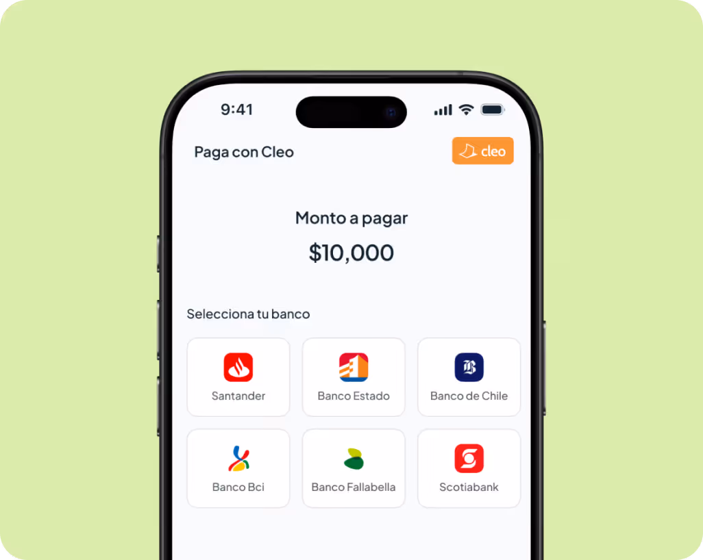 Botones de pago de todos los bancos de Chile. Tus clientes eligen su banco, transfieren y listo.