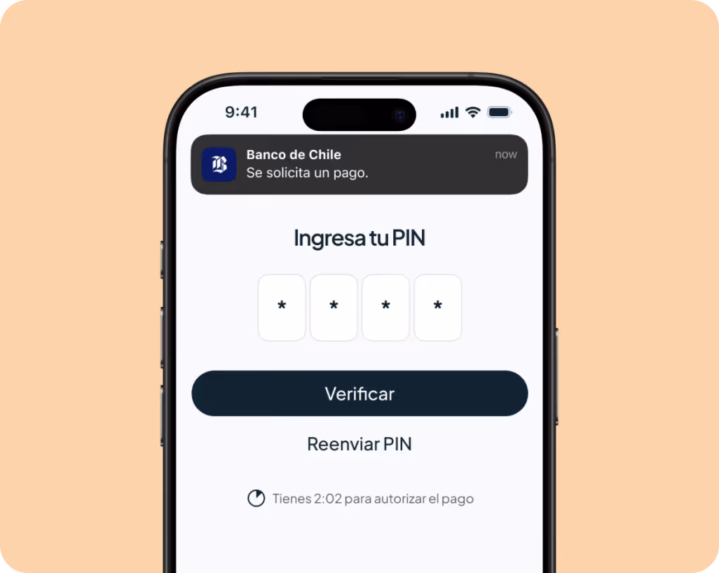 Recibe el pago de cada pedido al instante, directo desde el banco de tu cliente.